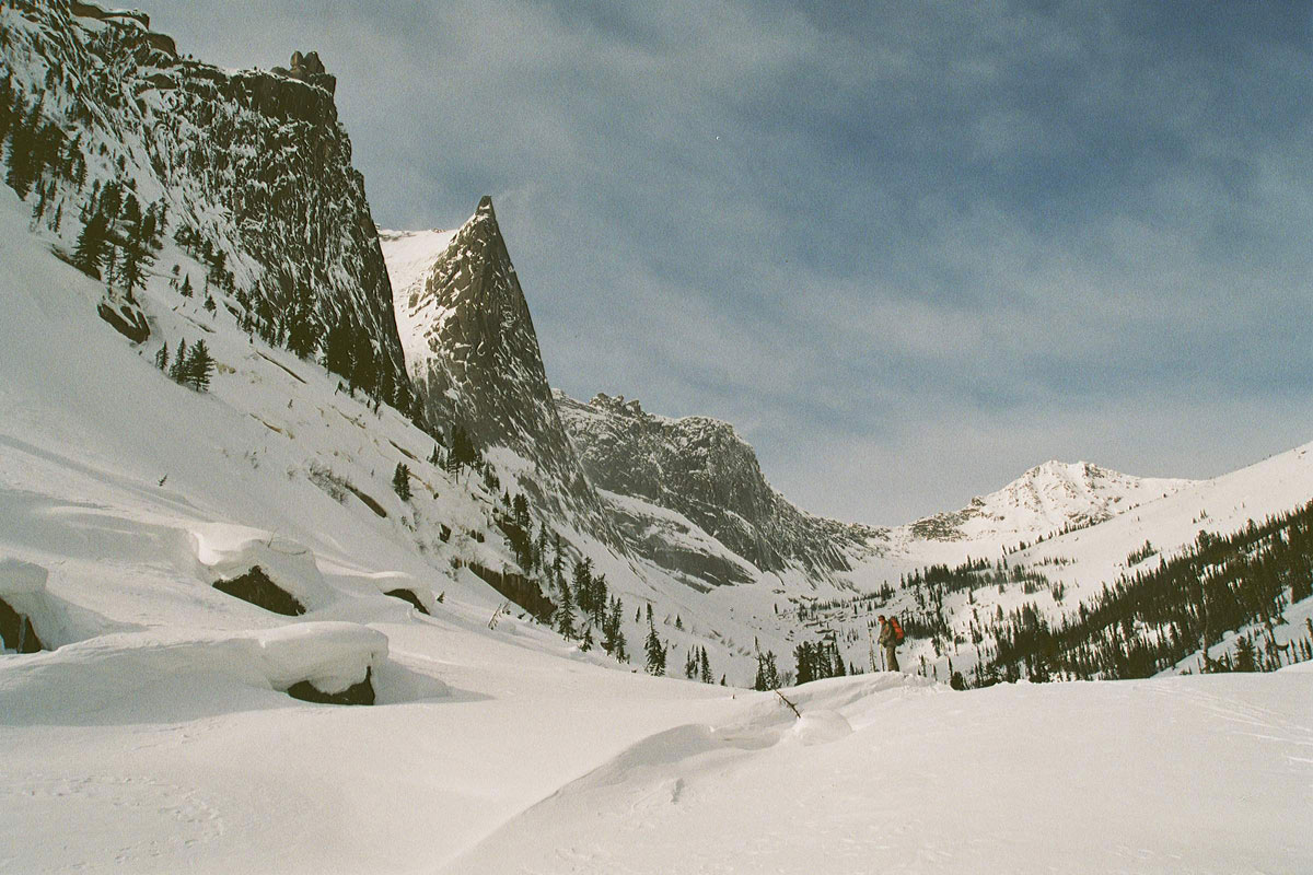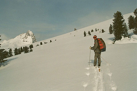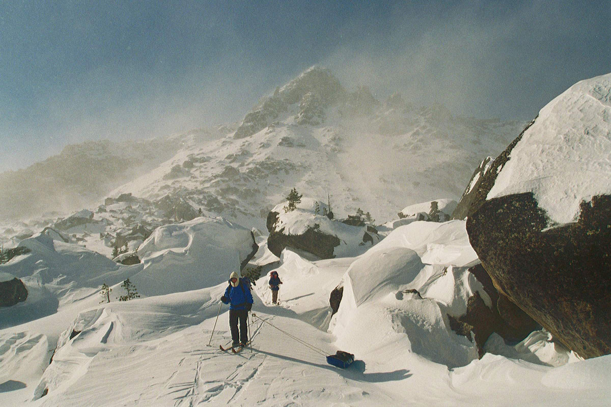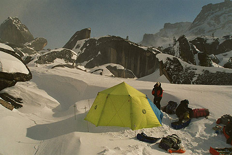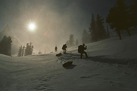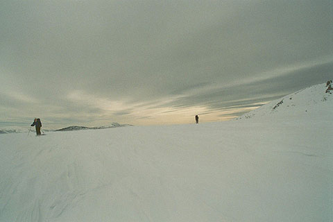 …сомнительный подъем по полосе исчезающего леса прекратили ввиду нарастающей лавинной опасности и двусмысленности погодных условий…
